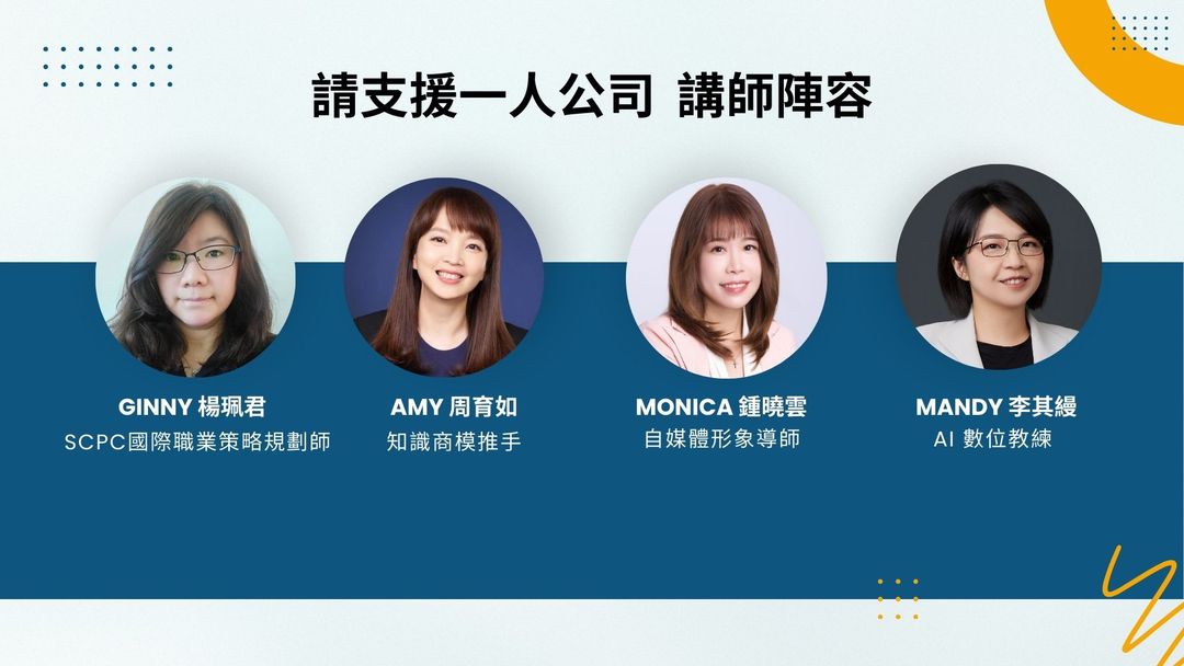 主辦單位:請支援一人公司 協辦單位: 🔹 亞太知識創生發展協會 講師社群與學習交流平台,舉辦師說新語等講師課程活動 🔹 書粉聯盟 全台最大的讀書會社群平台,舉辦各式線上下讀書會活動 🔹 台灣自媒體產業發展協會 自媒體產業發展協會發起自媒體課程活動與專案計劃,協助自媒體夥伴成長